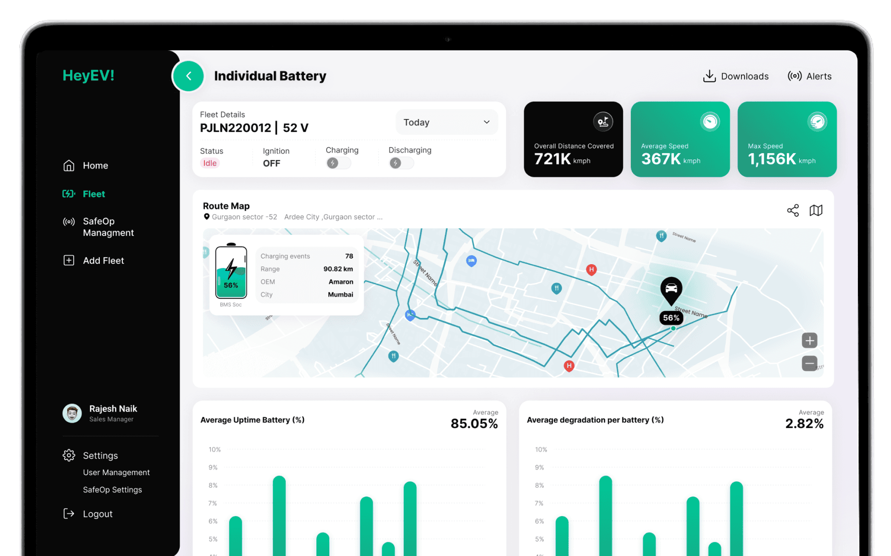 The interface adjusts to your role—whether reviewing driver behavior or battery levels—showing only what you need for faster, clearer decisions.