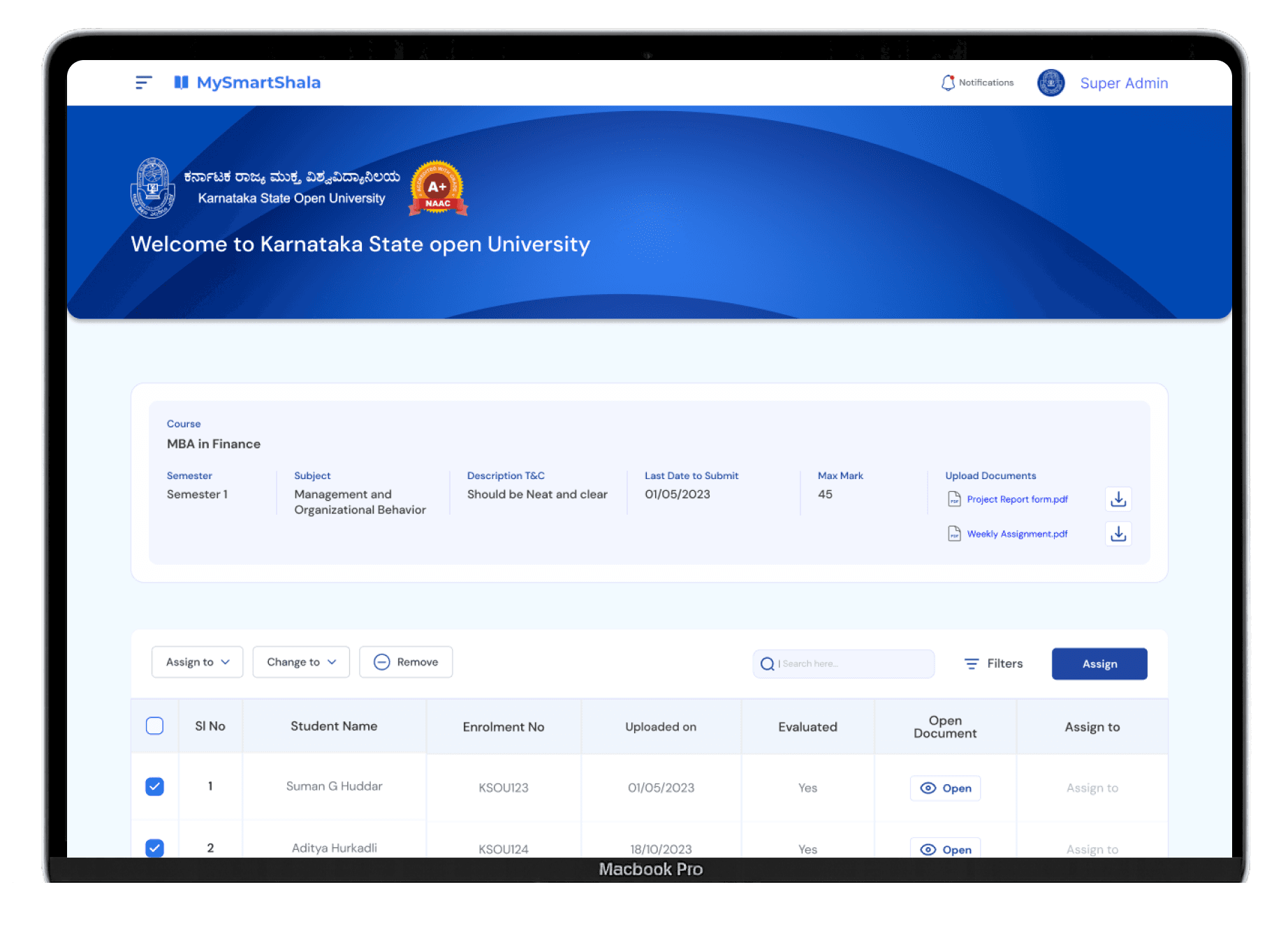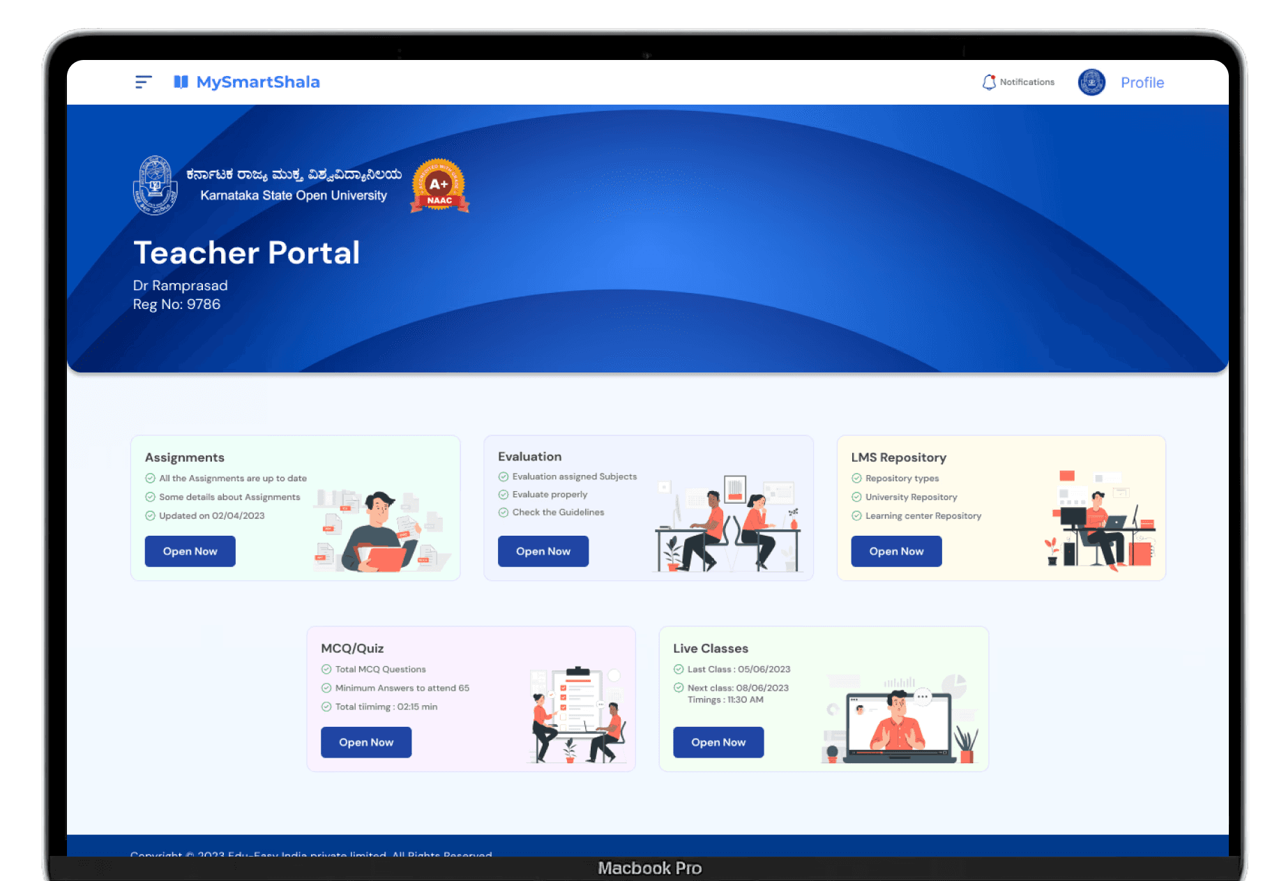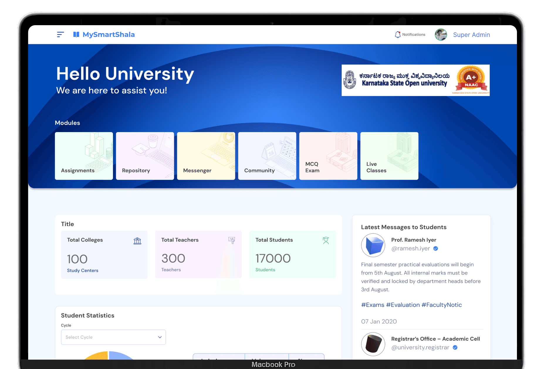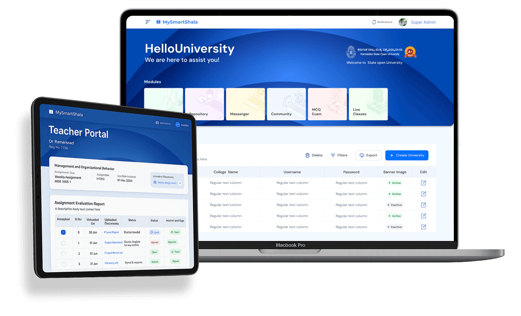 The My Smart Shala dashboard was designed as a scalable control system for universities — not just to manage academic processes, but to modernize how institutions interact, assess, and operate daily. It brings together core academic tasks into one unified interface. From assessment workflows to communication tools, every feature was thoughtfully built to support role-specific needs while maintaining operational clarity. With integrated digital documentation, live alerts, LMS connectivity, and reporting modules, the dashboard now acts as a single source of truth for faculty and admin teams alike.
