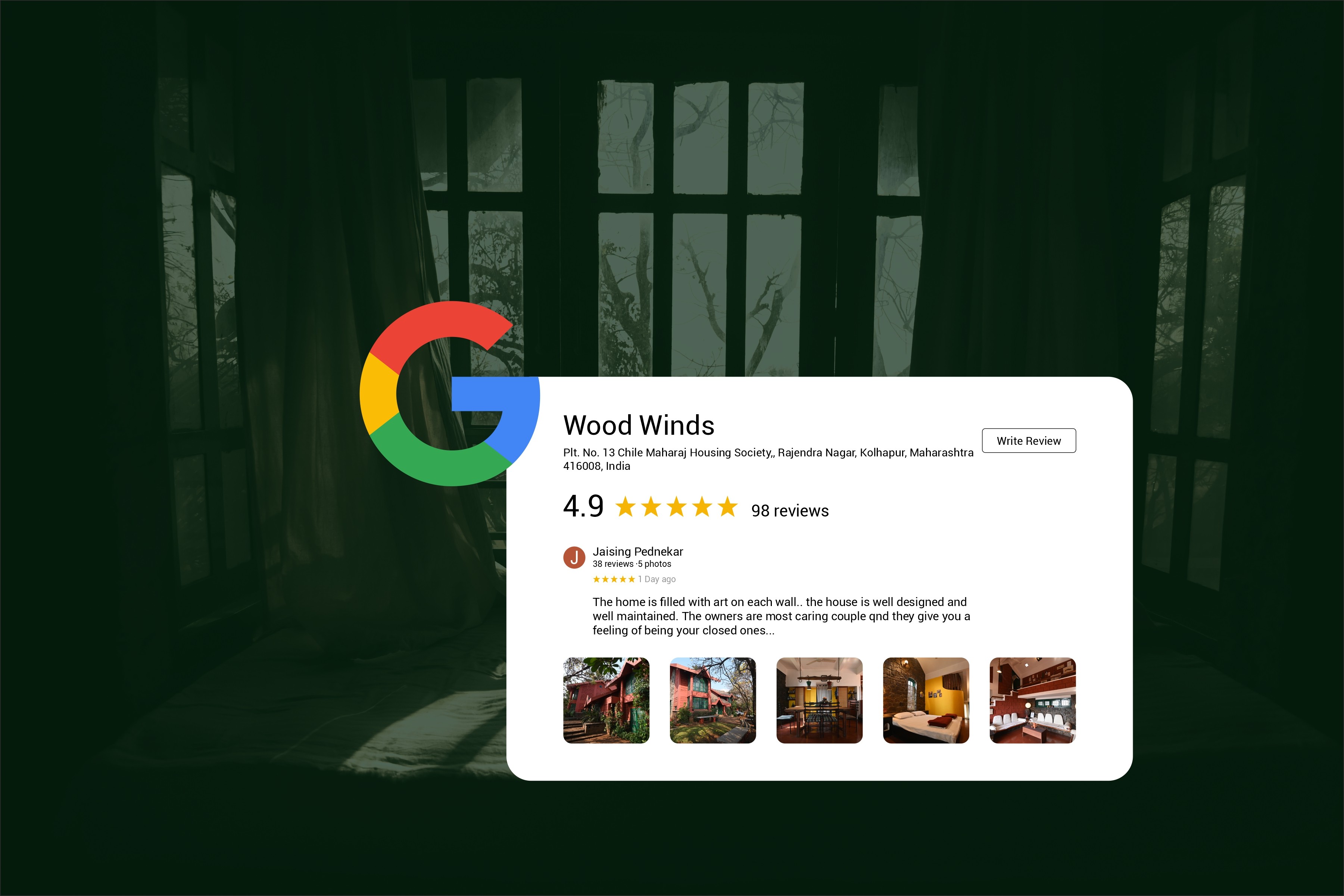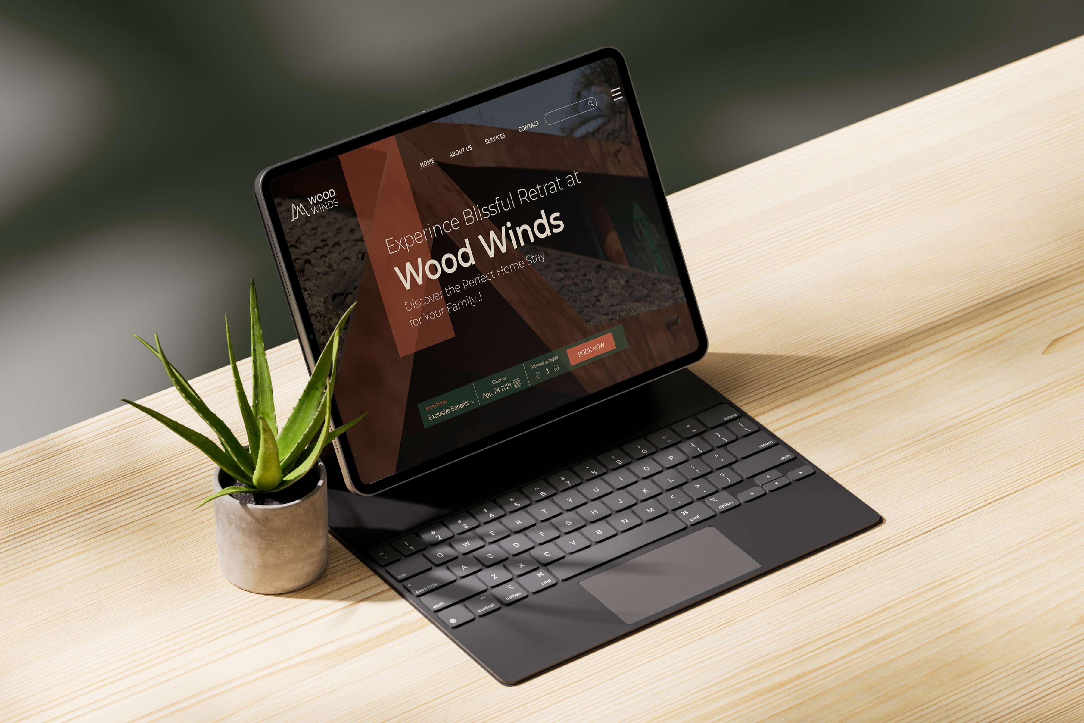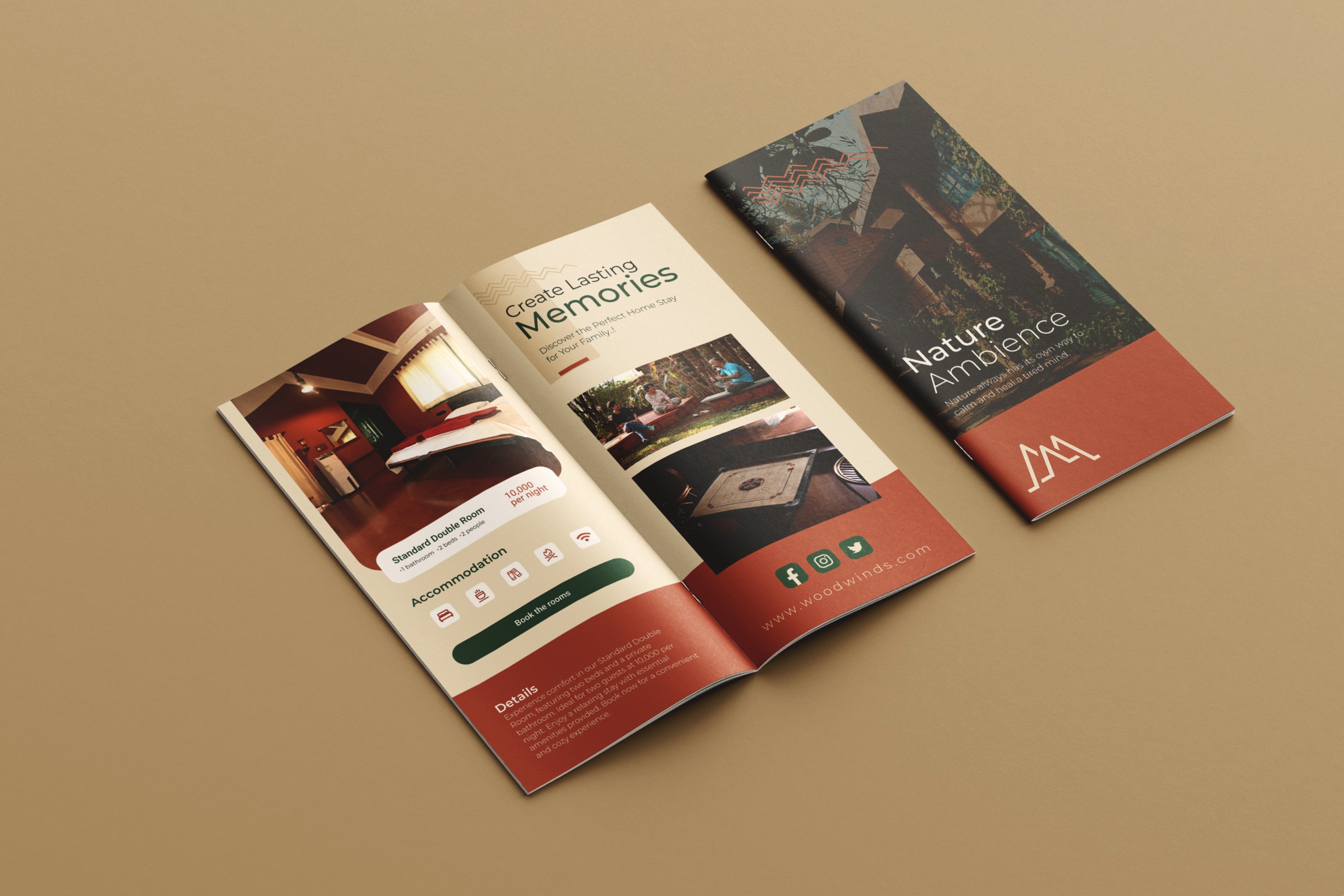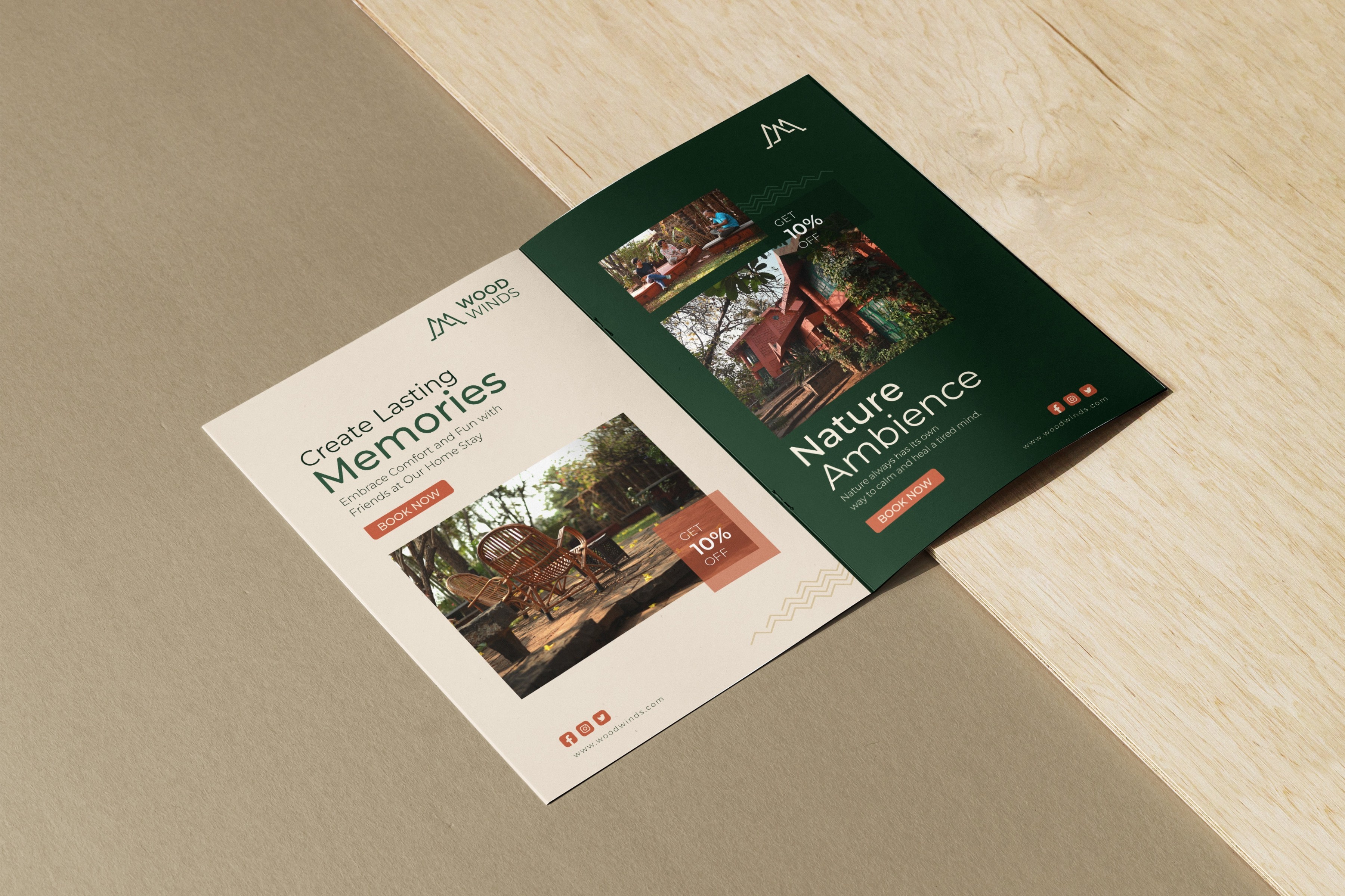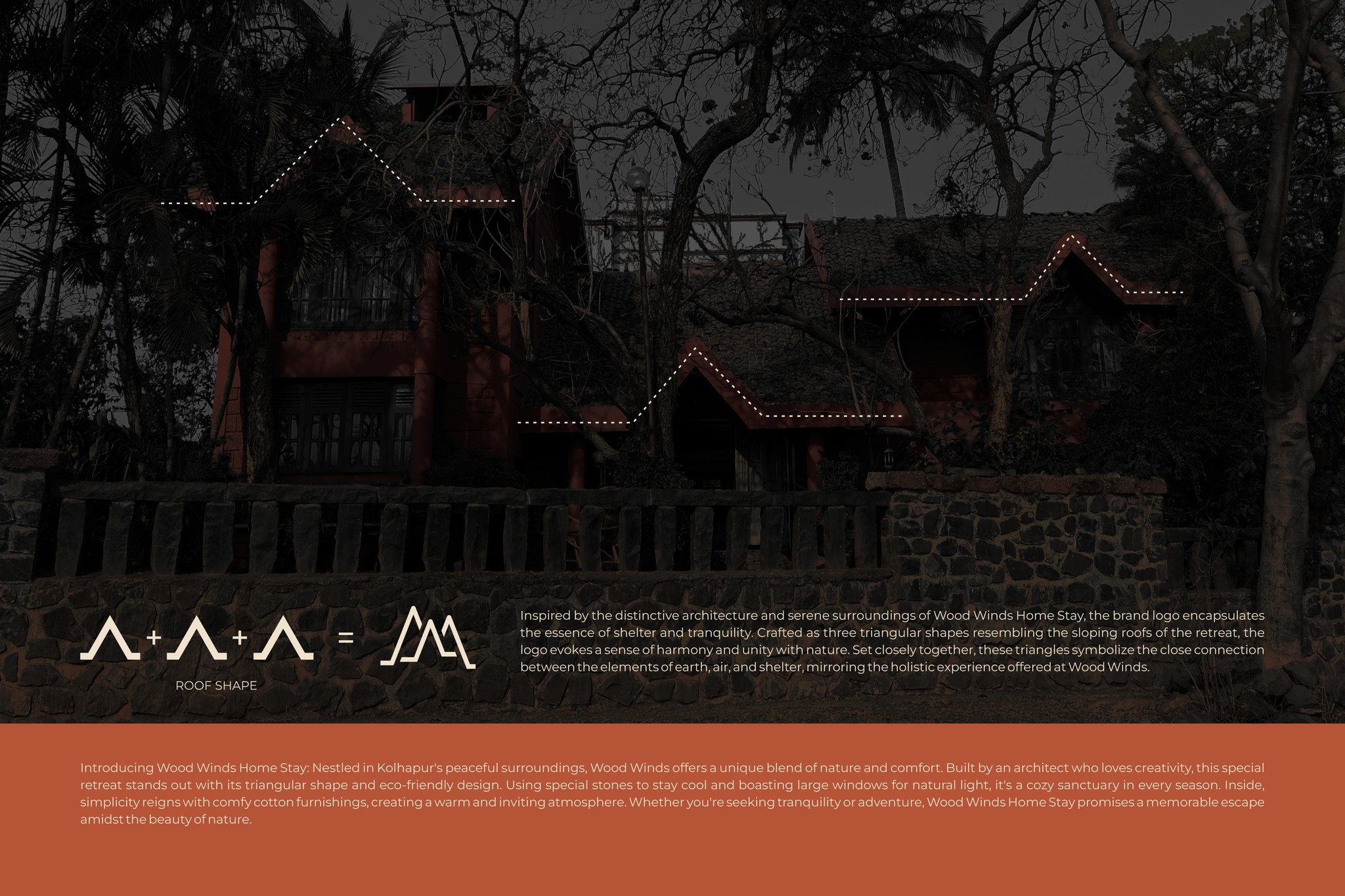 The bold "Wood" shows stability, while the lighter "Winds" gives a soft, airy feel, just like the peaceful vibe of the home stay.